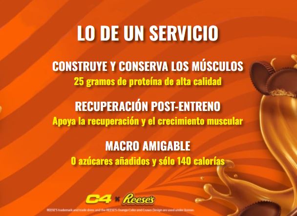 C4® Whey Protein ahora está disponible en tres irresistibles sabores: chocolate con leche de HERSHEY’S, mantequilla de maní y chocolate de REESE’S y vainilla. Cada porción contiene 25 g de proteína para favorecer el crecimiento y la recuperación muscular, todo ello sin añadir azúcar.