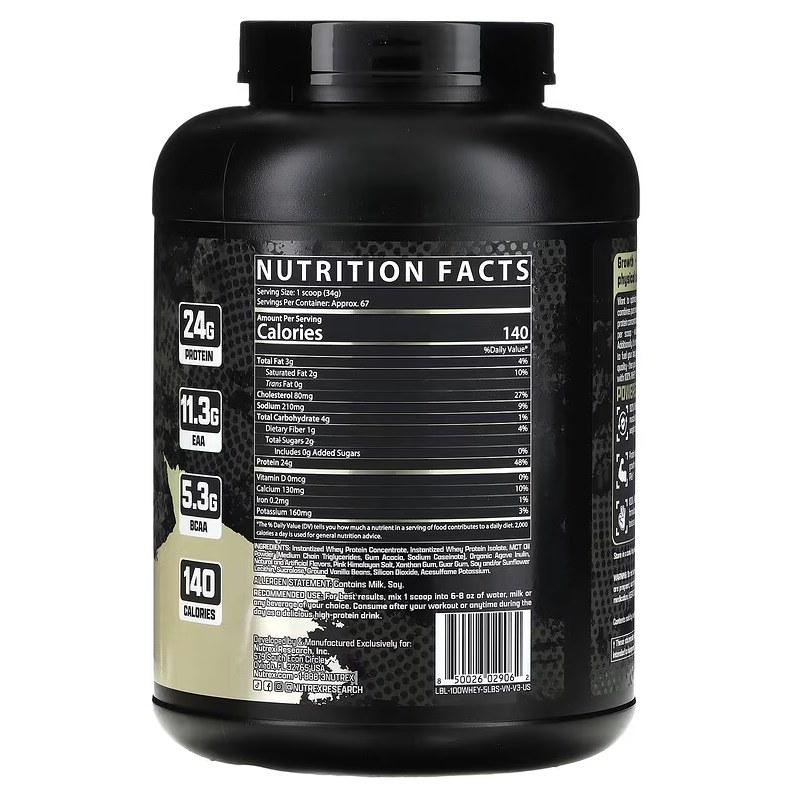 100% WHEY de nutrex es puro combustible para desarrollar músculos y es perfecto para sus objetivos de desarrollo muscular o pérdida de peso. Contiene una mezcla premium de 24 g de proteína de suero concentrado y aislado de proteína de suero por porción. Se digiere fácilmente. Su cuerpo puede utilizarlo rápidamente para apoyar el crecimiento muscular, la fuerza, el rendimiento y la recuperación.